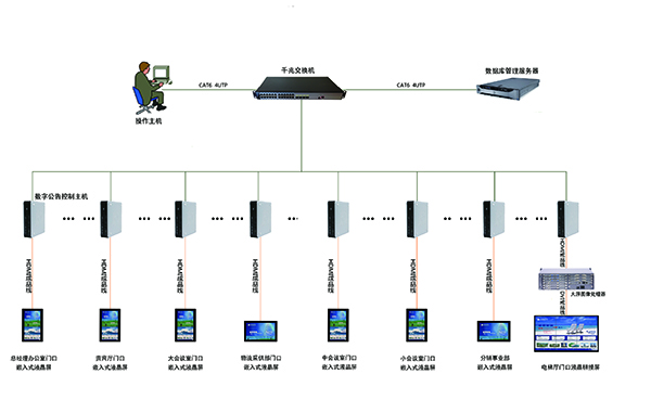 數(shù)字公告系統(tǒng)是構(gòu)架在網(wǎng)絡(luò)環(huán)境的新一代多媒體信息發(fā)布系統(tǒng),采用TCP/IP傳輸協(xié)議,由中心控制系統(tǒng)和顯示終端結(jié)合工作。系統(tǒng)軟件(Remote MultiMedia)構(gòu)建了一個(gè)通過(guò)集中管理實(shí)時(shí)多路播出的具有統(tǒng)一調(diào)度與靈活分組分區(qū)的多媒體信息發(fā)布平臺(tái),操作人員通過(guò)用戶賬號(hào)校驗(yàn)登錄到控制服務(wù)端進(jìn)行節(jié)目?jī)?nèi)容采集、編排、發(fā)布和管理等功能操作,節(jié)目通過(guò)網(wǎng)絡(luò)傳輸?shù)礁黠@控終端進(jìn)行本地存儲(chǔ)及信息實(shí)時(shí)播放。數(shù)字公告系統(tǒng)一般在入口大廳、會(huì)議室門口、電梯廳、餐廳等各處放置LCD、PDP、LED等顯示屏,可以播放緊急通知、宣傳廣告、會(huì)議議程、重要新聞等信息,而且支持不同的地點(diǎn)展示不同的信息,提供了便捷的內(nèi)部信息發(fā)布、智能的會(huì)議導(dǎo)引、交互式的宣傳展示。